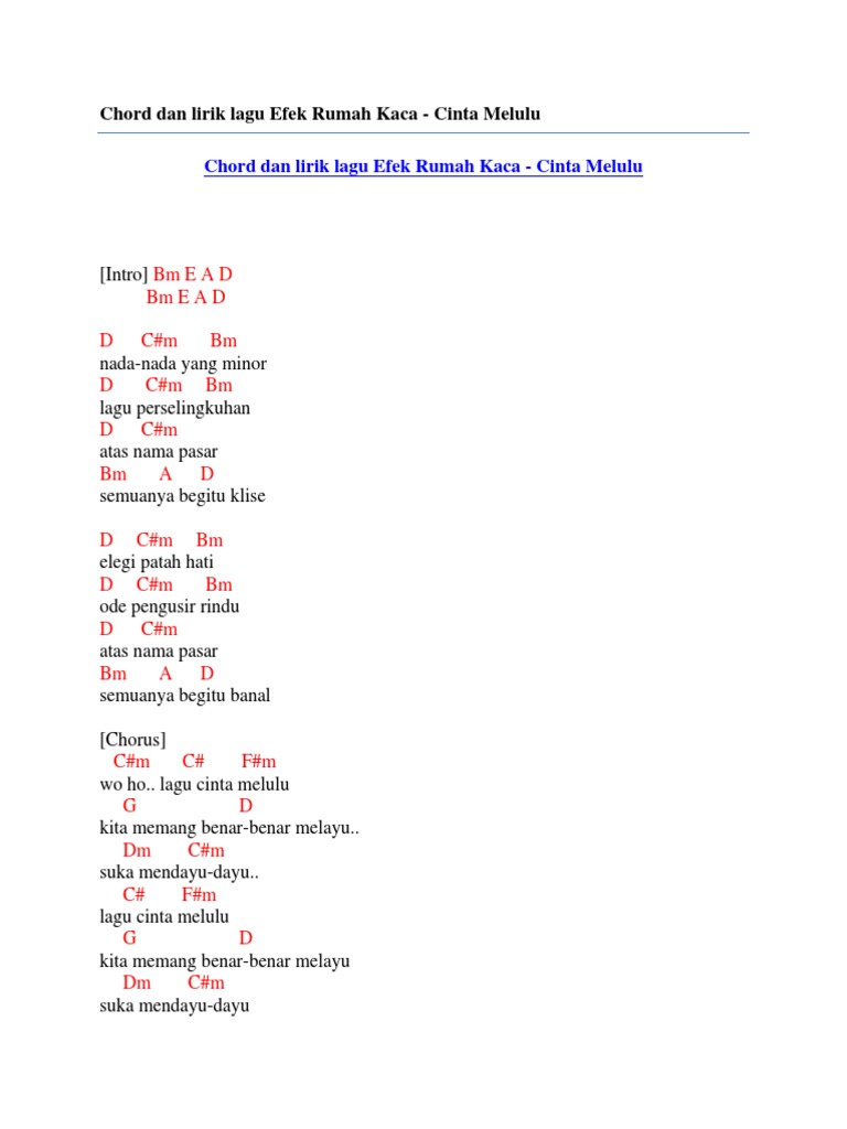 Chord Dan Lirik Lagu Efek Rumah Kaca Cinta Melulu Pdf